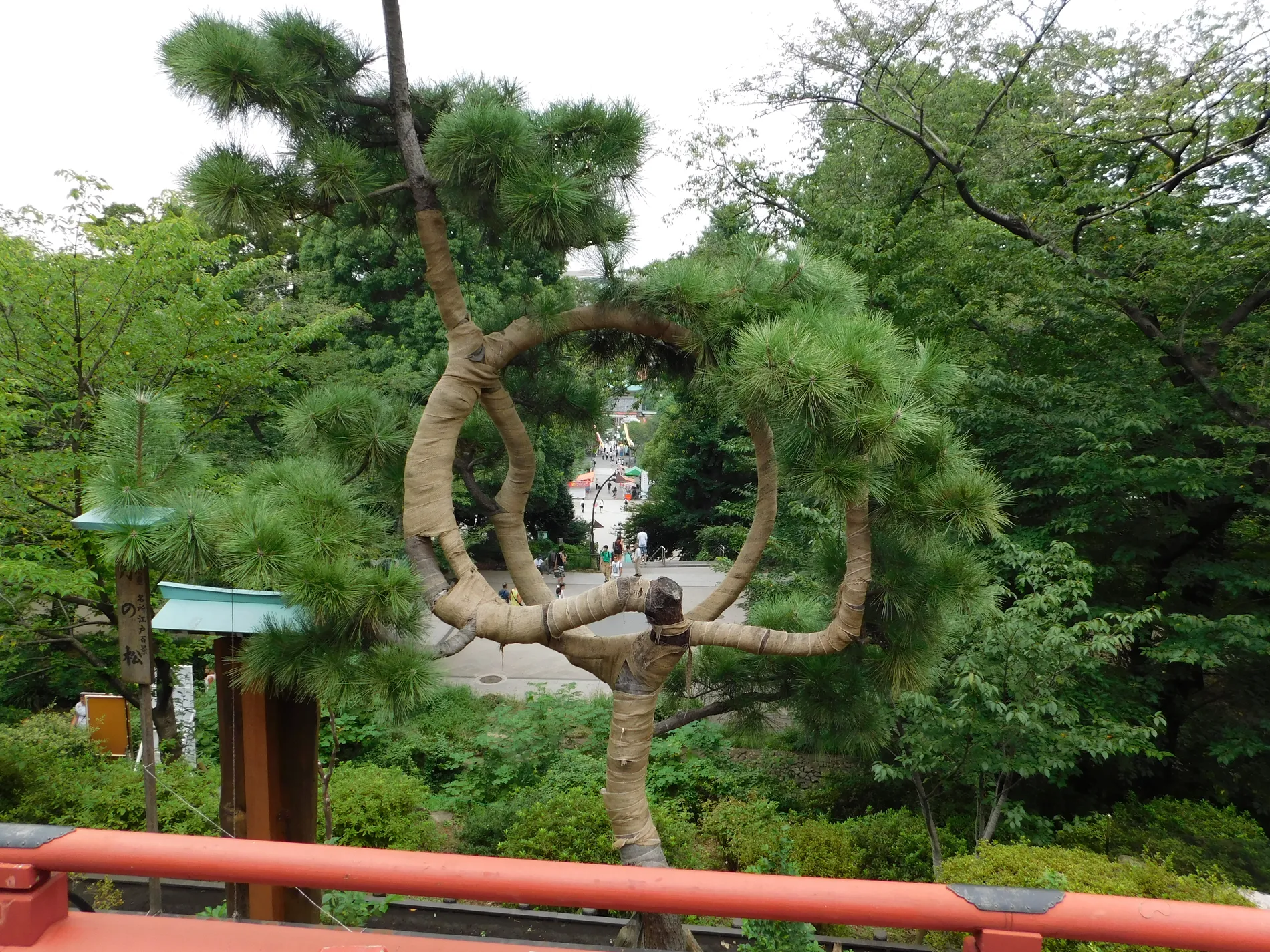 Die Kunst Bäume zu formen, wird auch hier betrieben. Durch den Baum hat man ein schönes Motiv mit Blick auf einen der Parkeingänge in der Nähe des Tempels.
