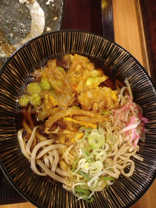 Wen es interessiert: Sobanudeln werden aus Buchweizenmehl hergestellt und gehören neben Sushi und Tempura zur traditionellen japanischen Küche. Sie werden in einer heißen Brühe serviert, oder abgekühlt in einem Bambuskorb (Zaru) mit separater Soße (Morisoba od. Zarusoba).
